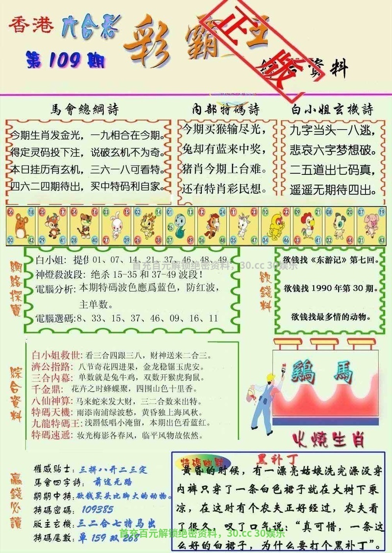 | 101期:☀平特三肖☀♠【鸡+鼠+羊】♠ |