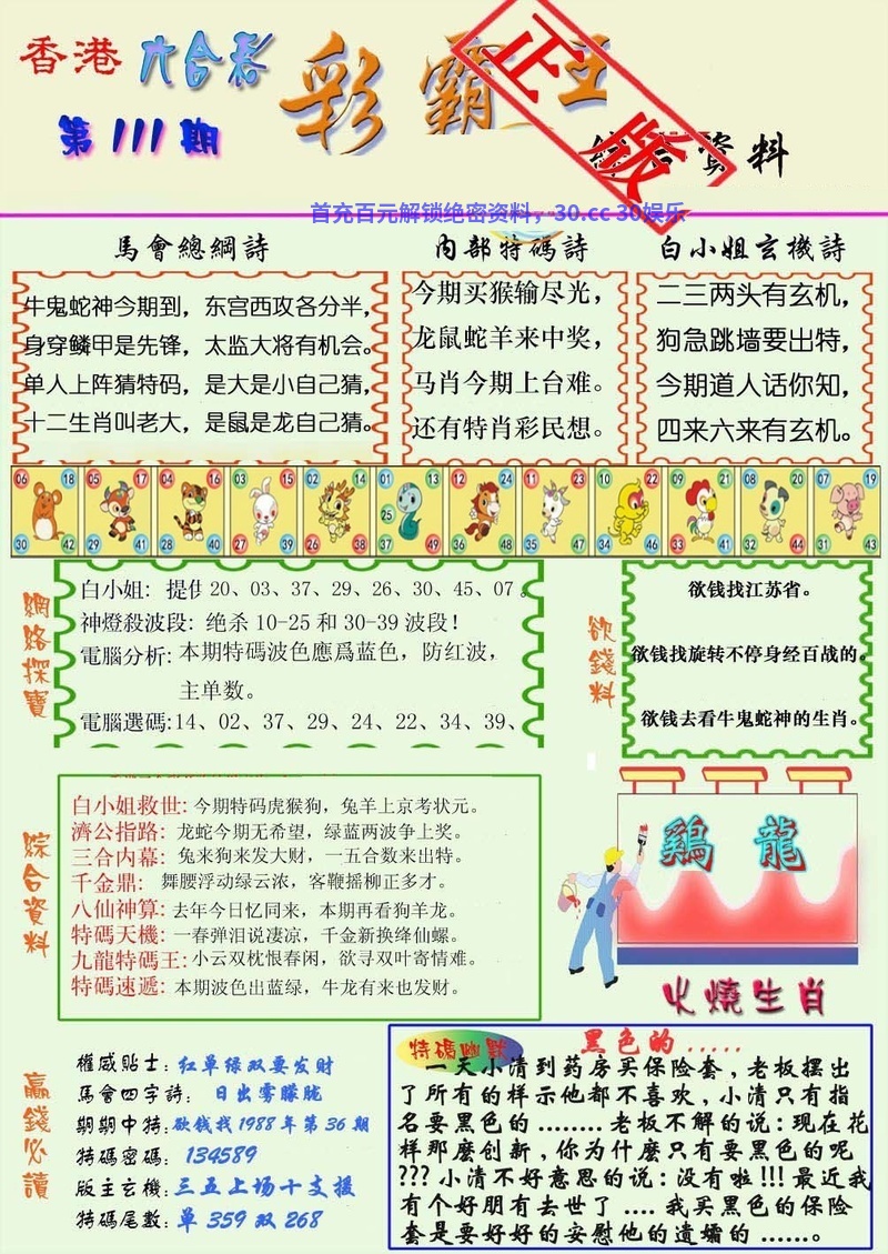 | 111期:☀平特三肖☀♠【虎+兔+龙】♠ |