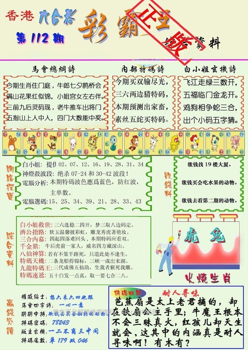 | 112期:☀平特三肖☀♠【马+鸡+鼠】♠ |