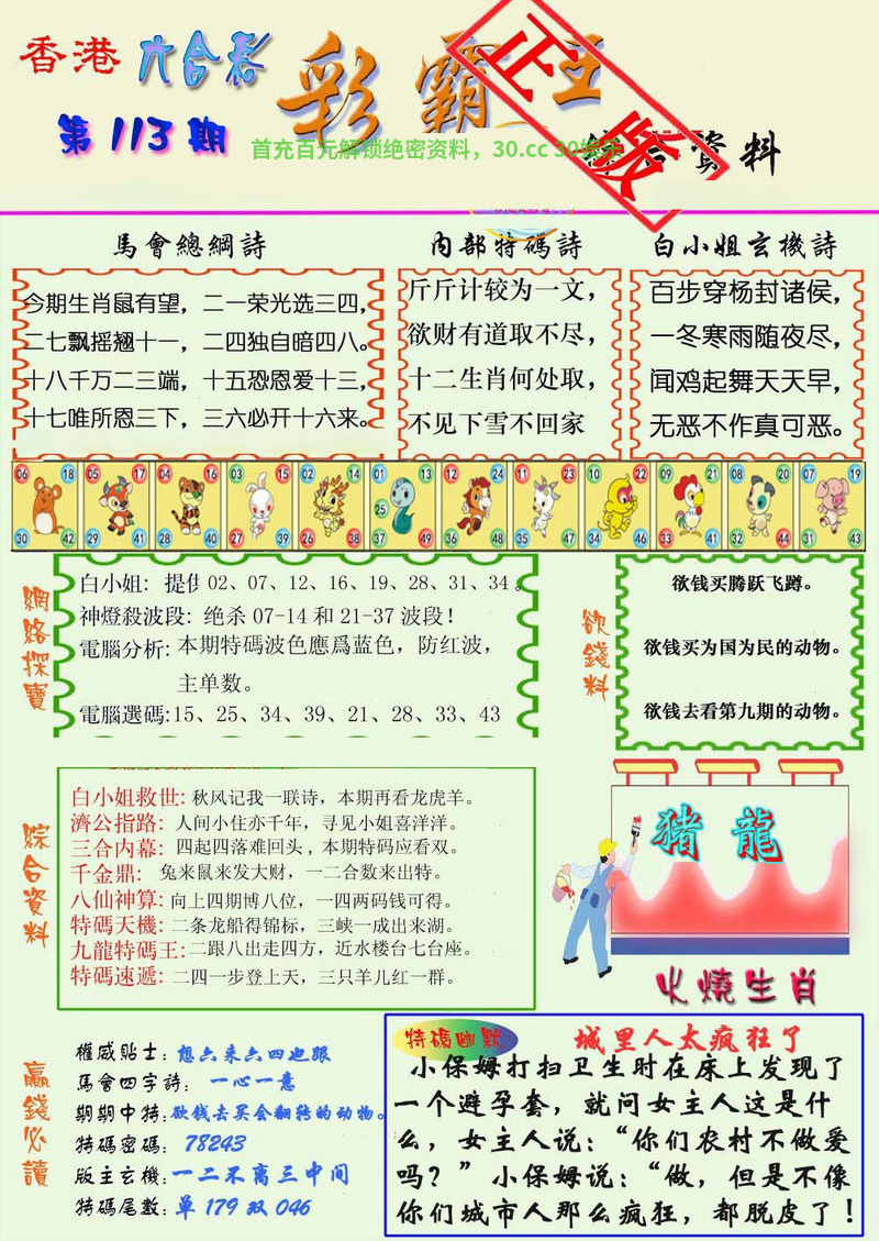 | 114期:☀平特三肖☀♠【马+鸡+兔】♠ |